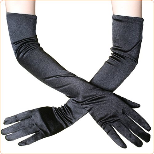 זוג כפפות ארוכות באורך 54 ס"מ העשויות מבד סאטן עדין במיוחד רך מאוד נעים ונוח כיאה למלכות